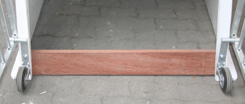 - seuil en bois bongossi 10cm haut qui permet de retenir le paillage